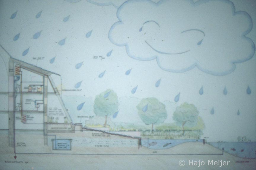 Rain water is collected by the roof, providing the inhabitants for all necessary water needs.