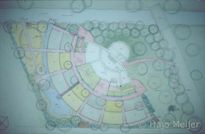 On one of the larger parcels I designed a self-sufficient, off grid house that would have enough room for a family, an office and animals, surrounded by food producing gardens. This house earned the title 'Eco Villa', as it turned out to be a fairly large building.